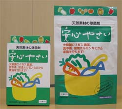 1袋(1g)を水に溶かし、数分間漬けるだけで、野菜・果物がすべて安全な植物になります。